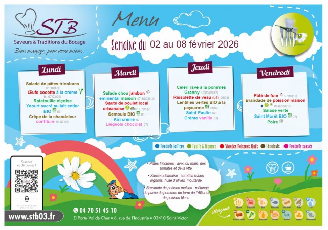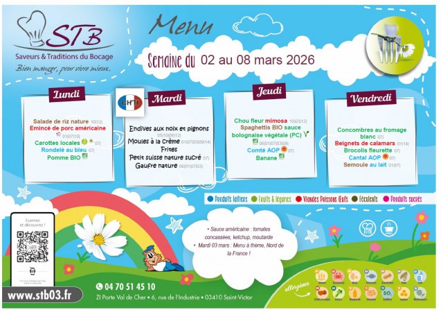 Menu de la cantine de Quinssaines
