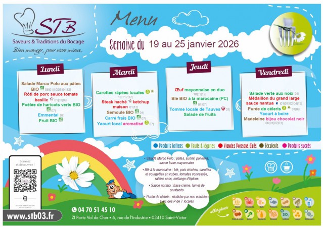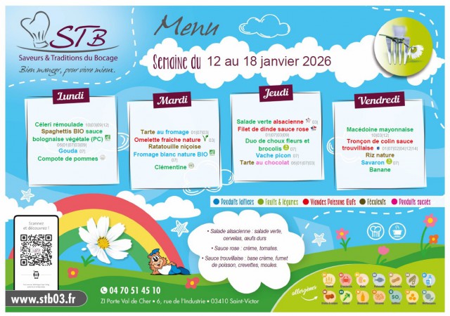 Menu de la cantine de Quinssaines